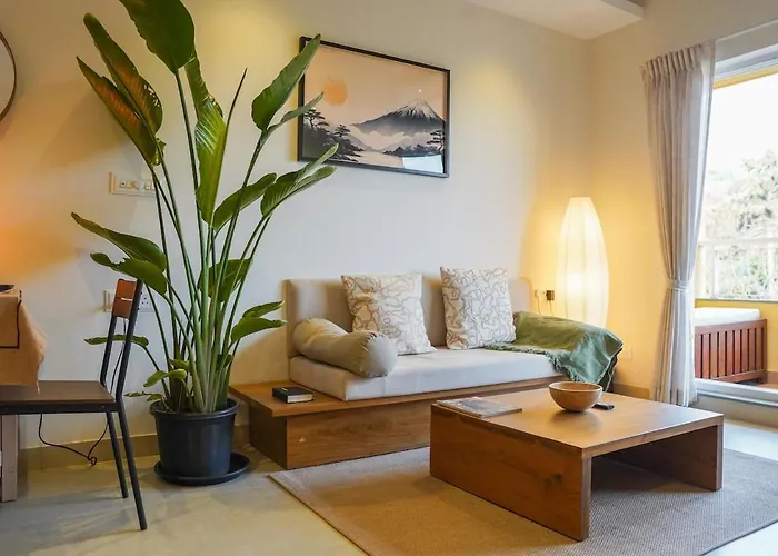 Con una piscina privada, el Kanso Residence - 1Bhk Japandi Inspired Apartment In Candolim está situado a tan solo 5 minutos a pie de Candolim Market.